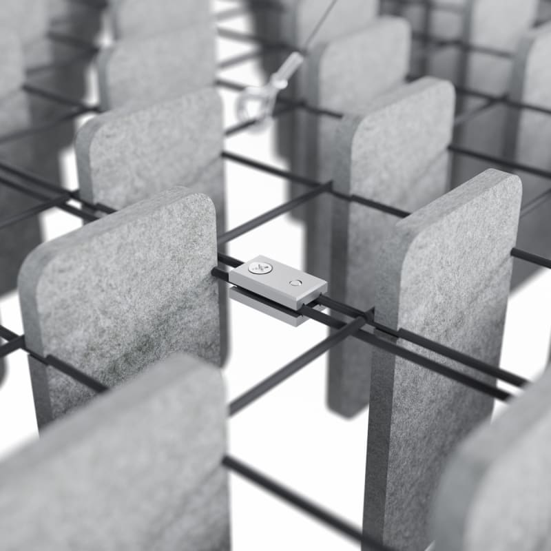 A perfect balance of acoustics and aesthetics. Zintra Mesh Baffle systems feature Zintra acoustic quills hung from a suspended powder coated mesh. Zintra Mesh Baffles Offset features individual quills artfully arranged in a unique, offset pattern.