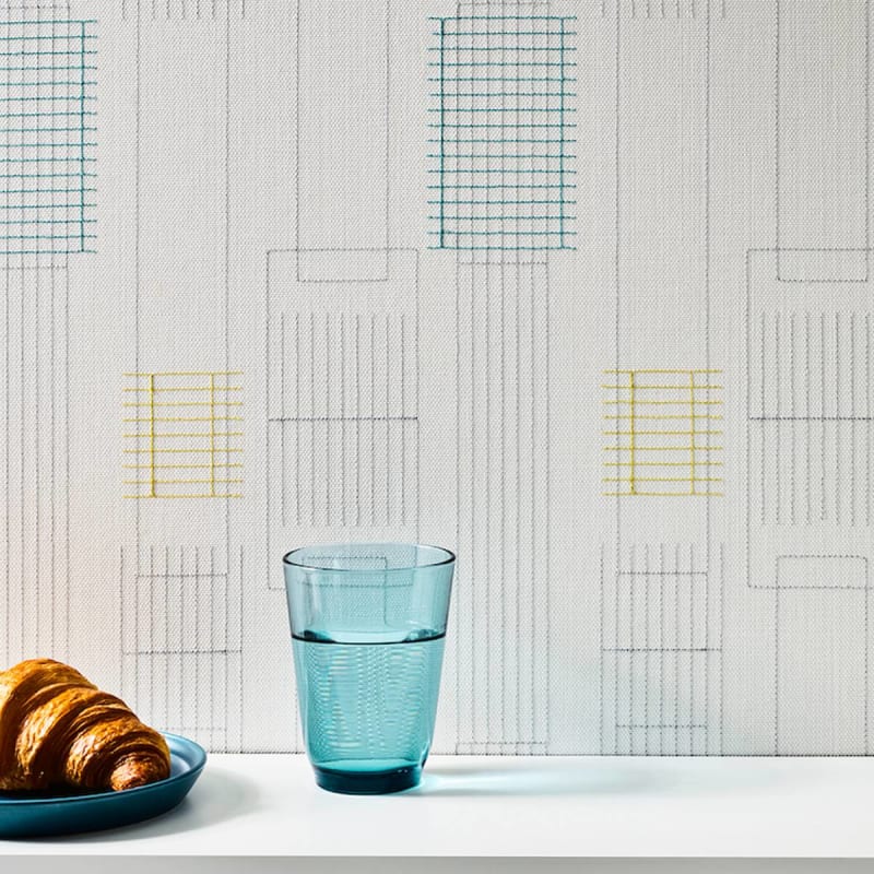 Satellite Embroider features a graphic and geometric gridded pattern in 3 muted colorways. Durable, anti-microbial and bleach cleanable.