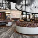 EJE discussed the concept at length with our in-house design and manufacturing team to assess what the best solution could be. After careful consideration of the project requirements which included thermoforming Lucere Smoke to fit into the custom suspended pods, it was decided to swap Lucere Encapsulated out for Seraphic Digital Print to allow the panel thickness to reduce to 3mm and for the panel to be cold-formed rather than deal with some of the costs and complexities of thermoforming. Baresque Manufacturing also took on the in-house fabrication of the whole pod which allowed for a more efficient design and supply process. The Seraphic Digital Print panels were fixed to the top circular unit that took the structure and weight of the unit bolted together with a flared base. This resulted in a bespoke two-part custom suspended pod system hanging side by side to create two seating zones in the main entrance to Club Parramatta.